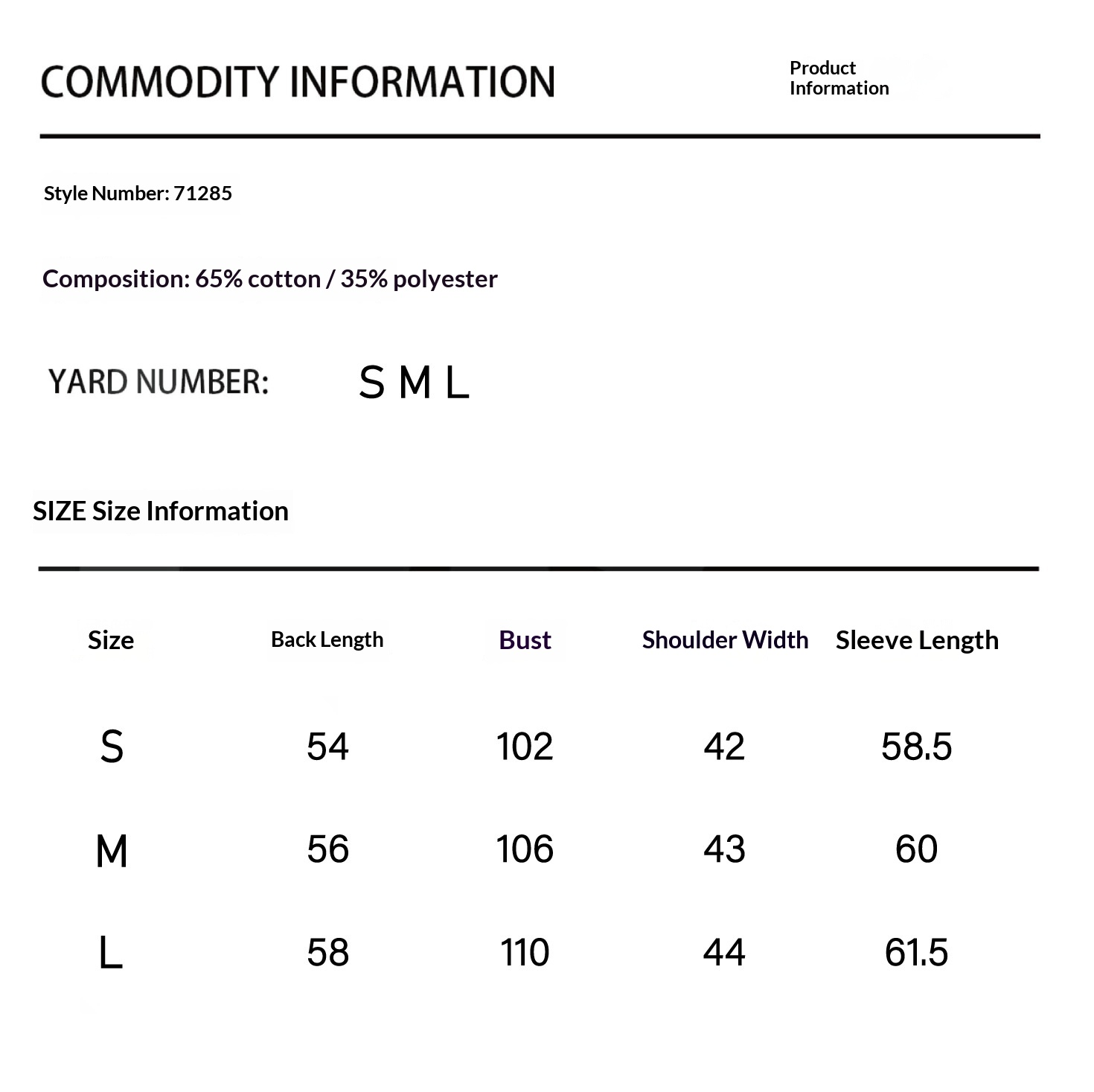 Product information: